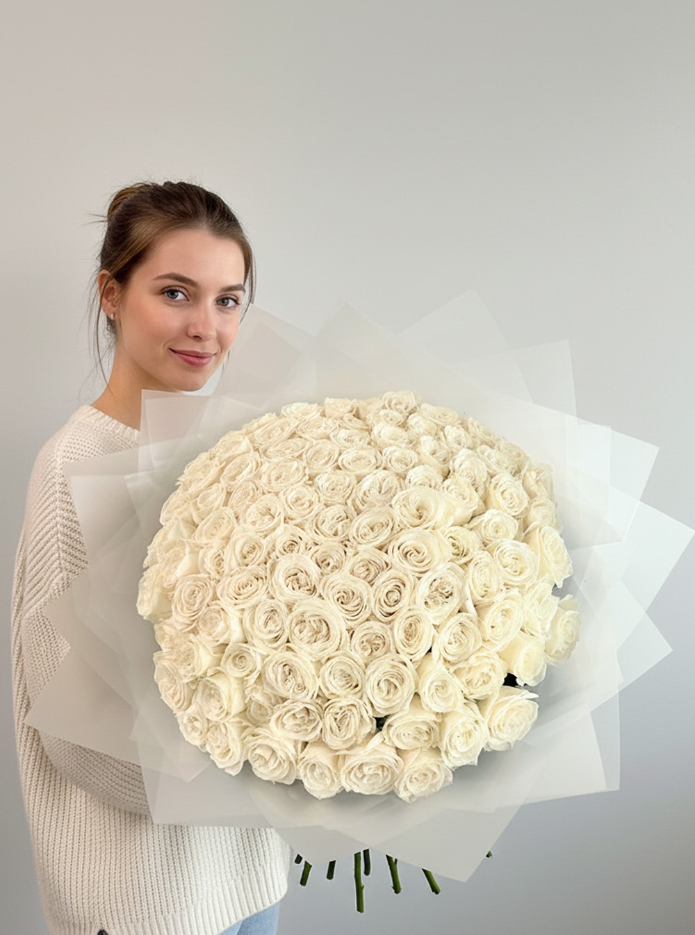 Bu görkemli buket, özenle seçilmiş, taptaze 101 adet bembeyaz gülden oluşur. Beyaz güller, sadece güzellikleriyle değil, aynı zamanda derin anlamlarıyla da konuşur. Yeni başlangıçları, temiz bir kalbi ve bir ömür sürecek bağlılığı temsil ederler.