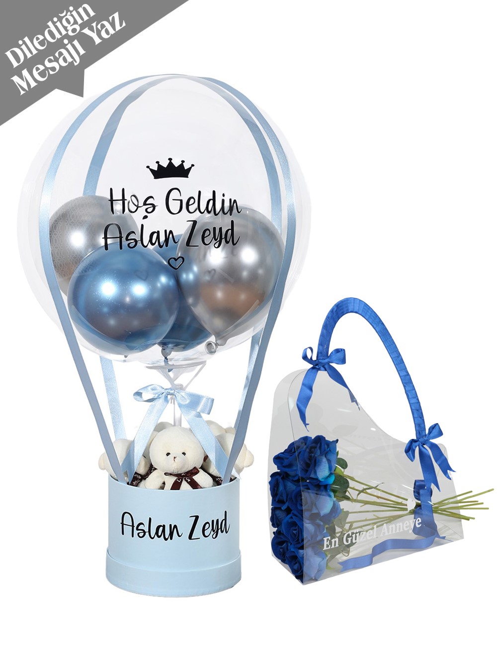 Kişiselleştirme: Balon ve çanta üzerine dilediğiniz mesaj yazılarak hazırlanır, böylece hediyenizin her detayı anlam kazanır.
