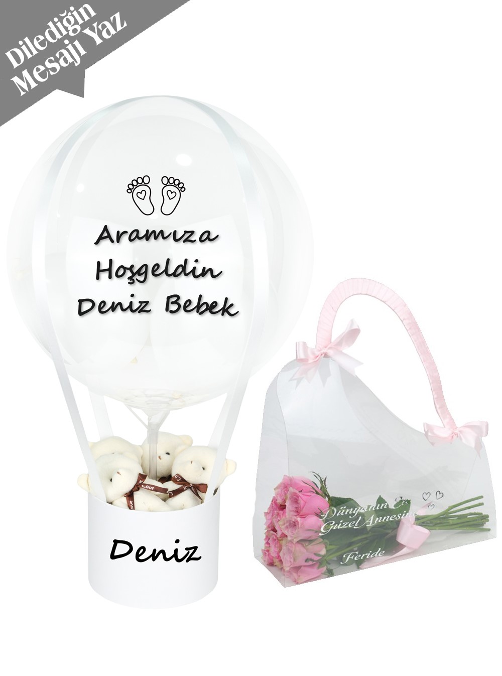 Anne Bebek Hediyesi Balonlu Set | Çiçek Sanat