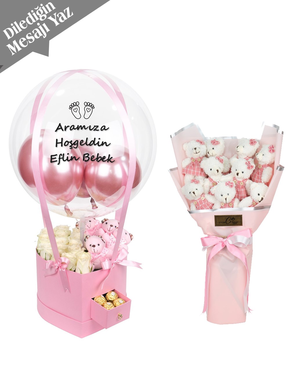 4 Adet Ayıcık, 7-9 adet gül, 4 adet rocher çikolata mevcuttur.