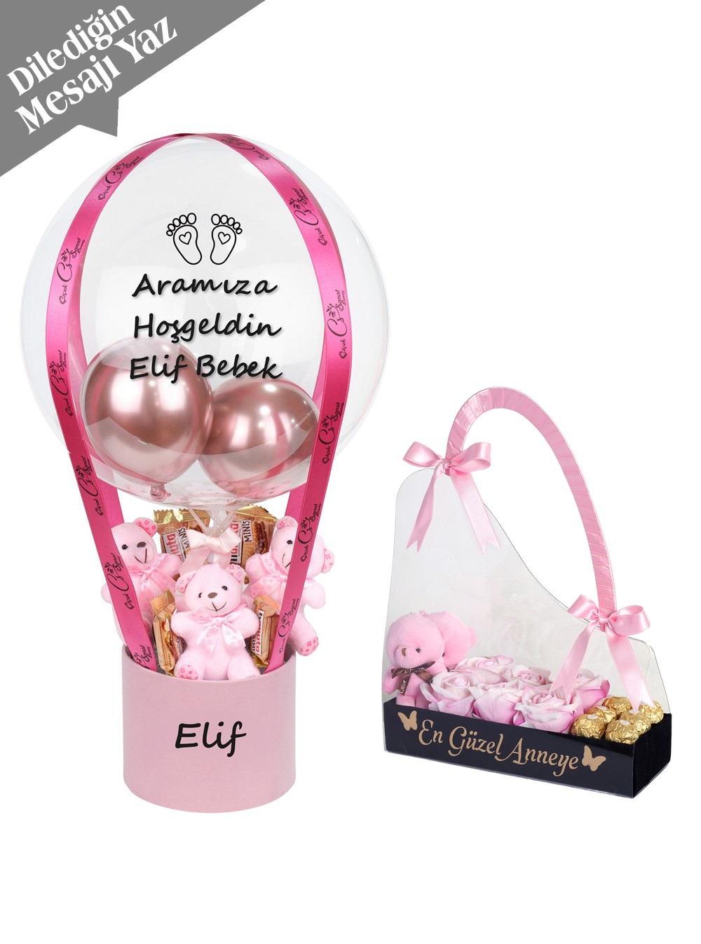 Çanta içerisinde 2 adet ayıcık, 6 adet yapay kalıcı gül, 6 adet rocher çikolata mevcuttur.