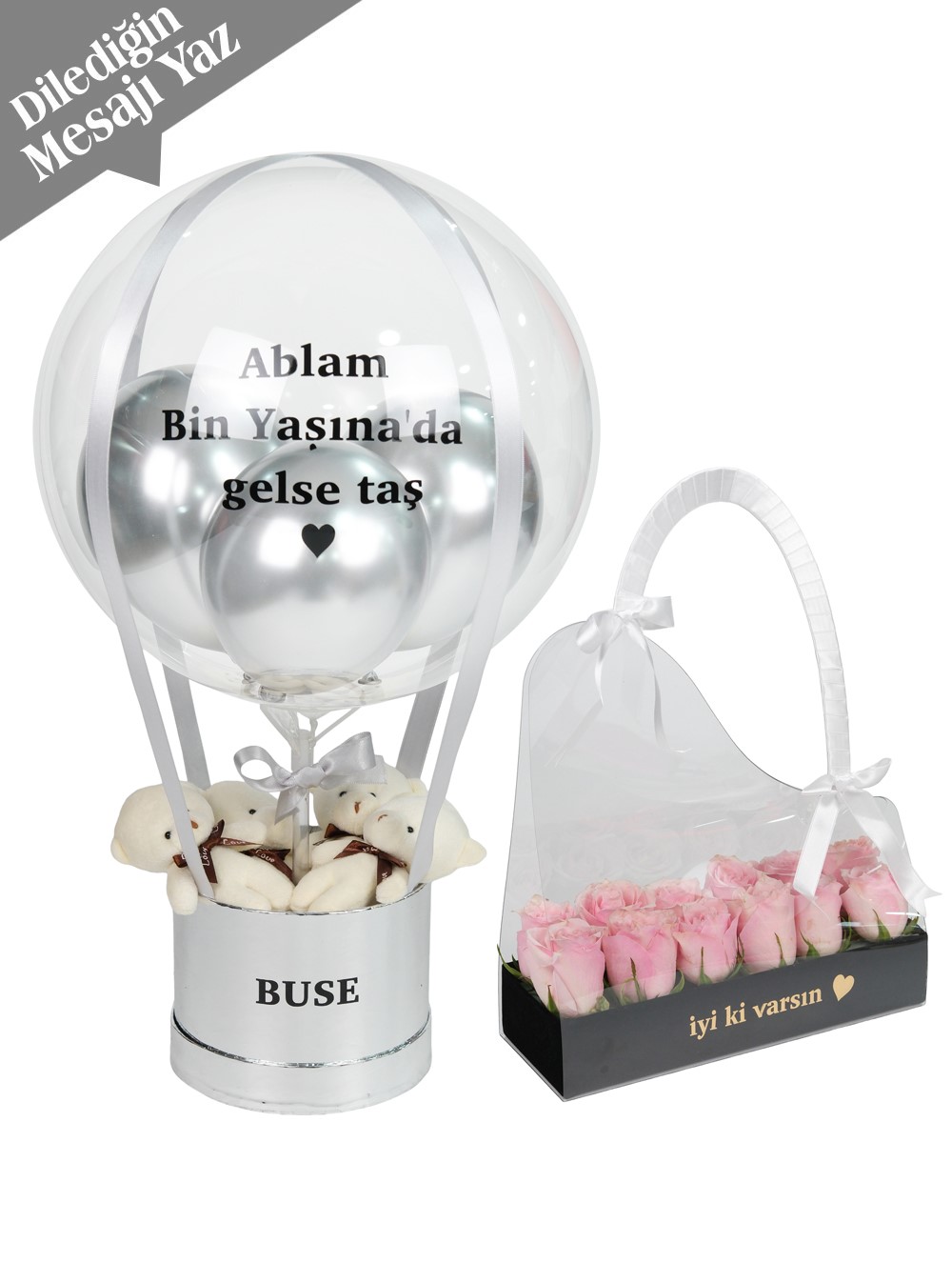 Aynalı Gümüş Serisi Doğum Günü Hediye Seti | Çiçek Sanat
