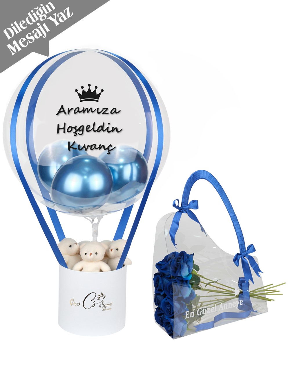 Kişiselleştirme: Balon ve çanta üzerine dilediğiniz mesaj yazılarak hazırlanır, böylece hediyenizin her detayı anlam kazanır.