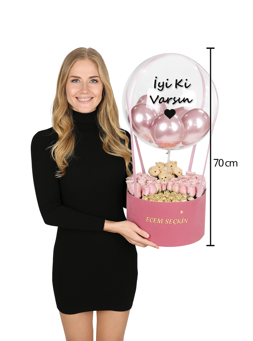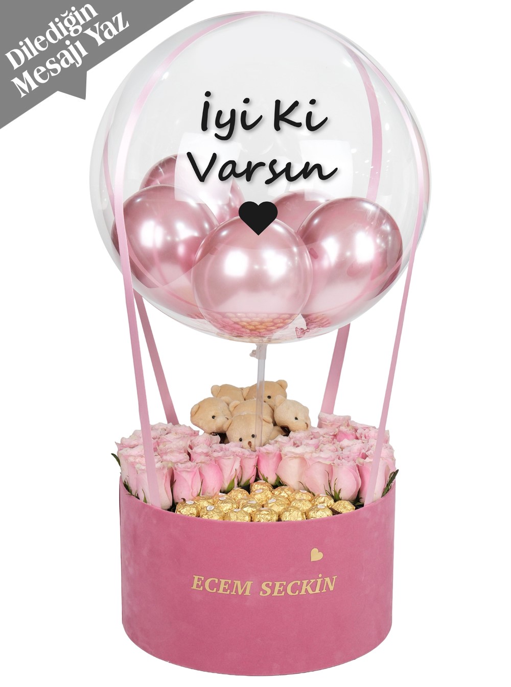 Dev Balon Kutusu Pinky | Çiçek Sanat