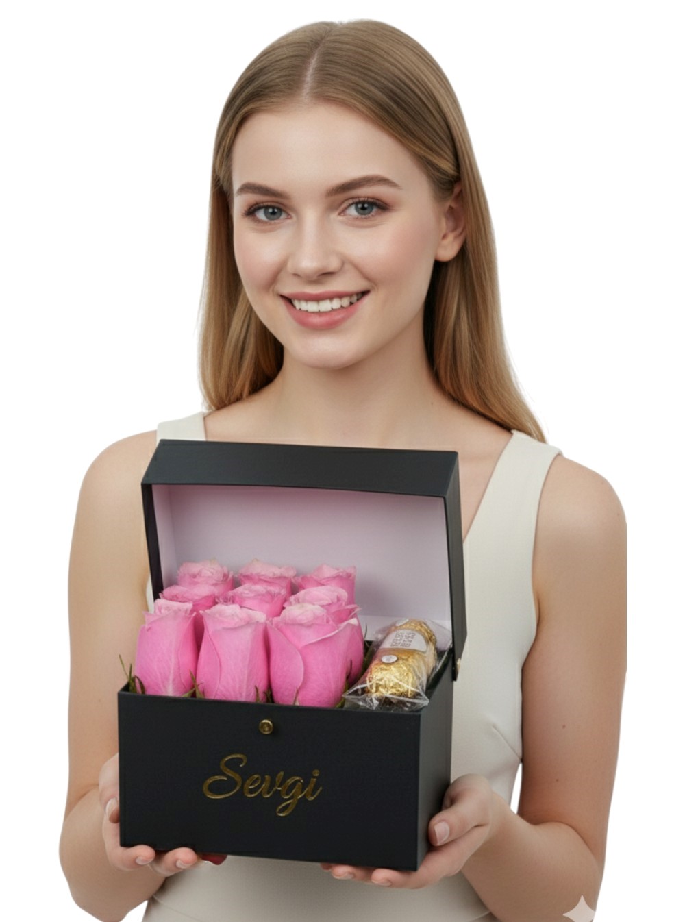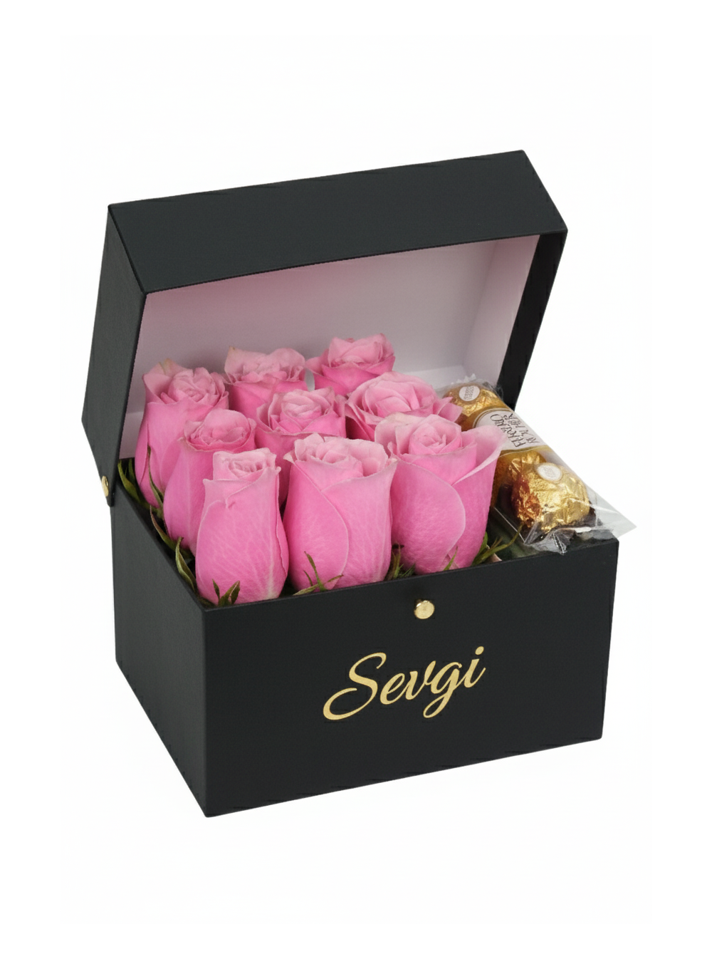 <p align="center"> Özel anları muhteşem kılmanın en güzel yolu,<br /> zarif kutularda sunulan gül kutularıdır.<br /> Sevdiklerinizi en özel şekilde ifade edin<br /> ve onları muhteşem bir sürprizle mutlu edin.<br /> Güllerin güzelliğini şık ve özel tasarımlı kutularımızla buluşturduk.<br /> Kapaklı<br /> Ürün içeriği;<br /> <br /> 9 adet ithal Gül<br /> 3 Lü Rocher<br /> <br /> Boyut: 18x14 cm</p>