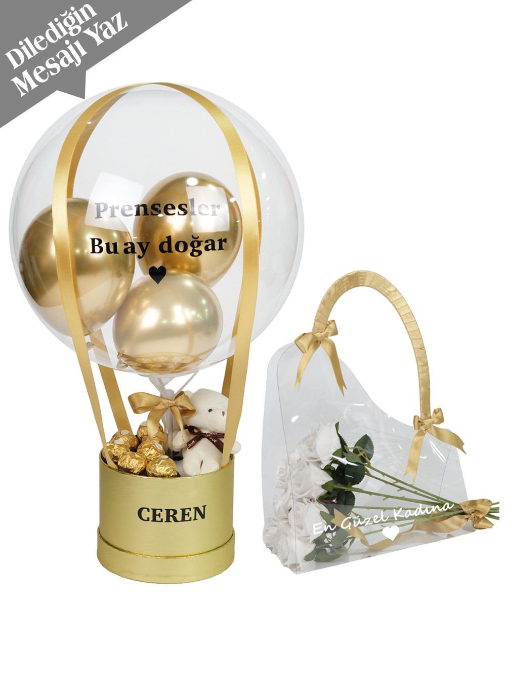 Kişiselleştirme: Balon ve çanta üzerine dilediğiniz mesaj yazılarak hazırlanır, böylece hediyenizin her detayı anlam kazanır.