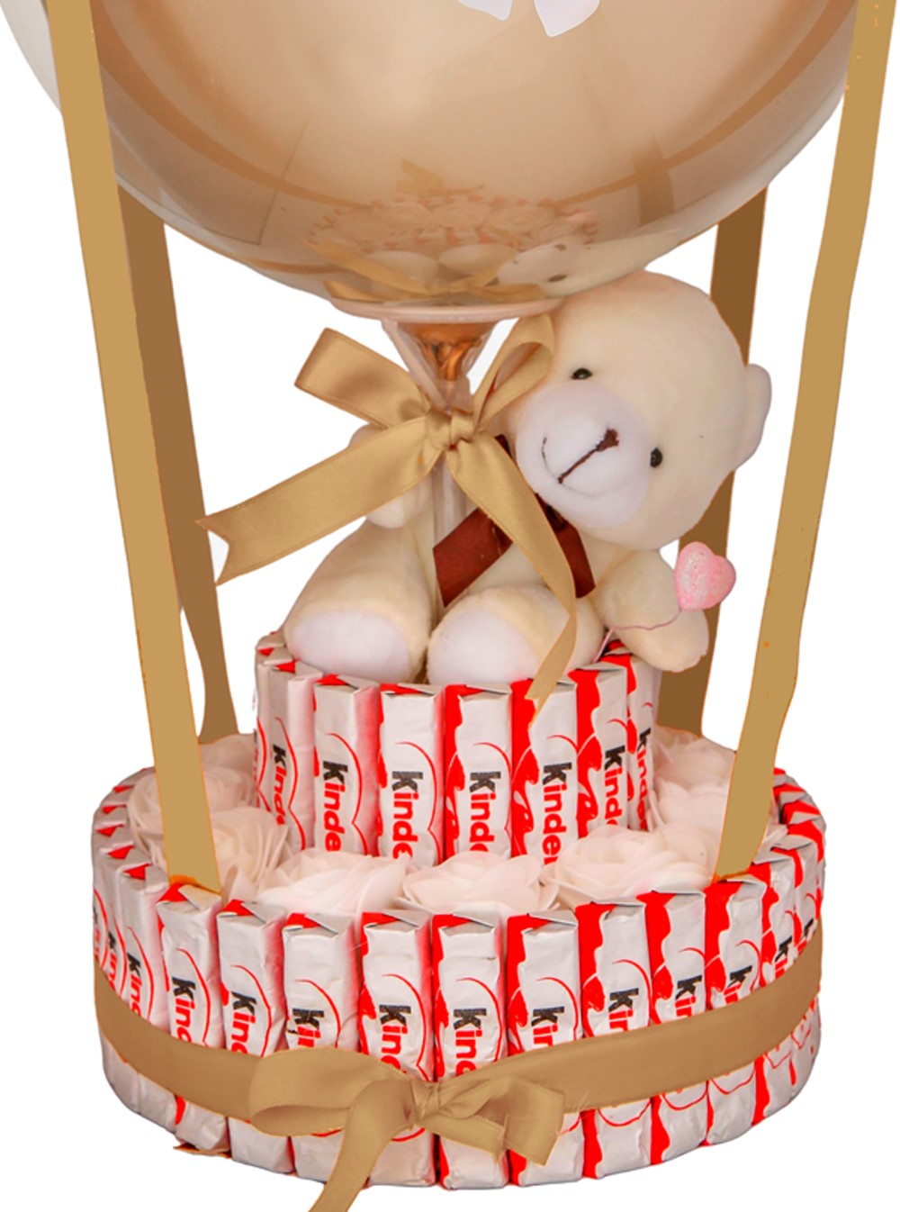 Gold temalı şık tasarımıyla dikkat çeken bu özel kutu, en güzel anları anlamlı kılmak için özenle hazırlandı. İçerisinde bolca Kinder çikolata, zarif görünümlü kokulu beyaz mum güller yer almakta. Hem tatlı hem de dekoratif bir dokunuş sunan bu tasarım, sevdiklerinize mutluluğu aynı anda armağan etmenin en zarif yollarından biridir.