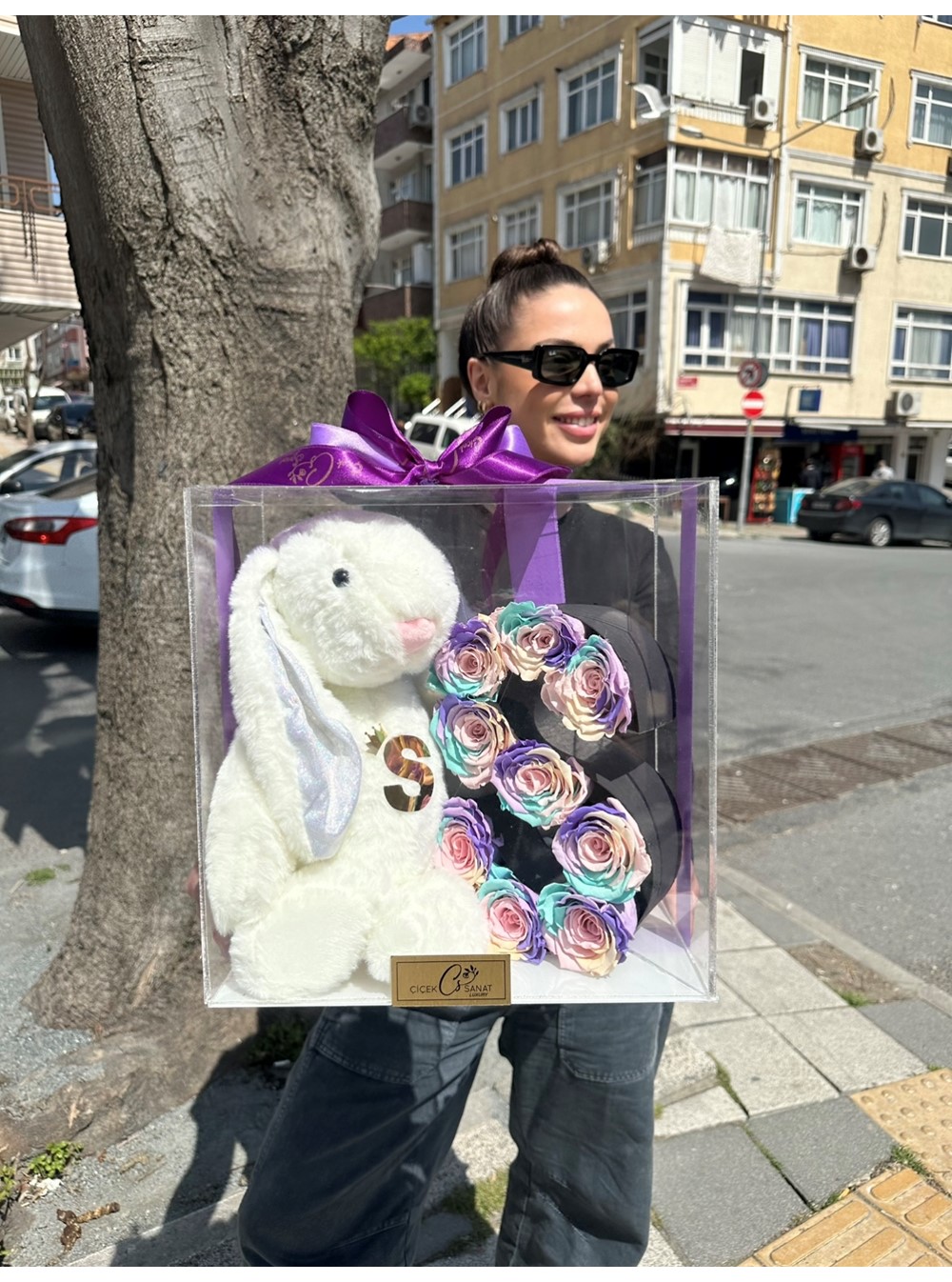 Pleksi kutusu içerisinde yer alan sevimli peluş ayıcık, kişiye özel baş harf ile tasarlandığı için sevgilinize ya da arkadaşınıza hitap eden bir hediye olarak öne çıkmaktadır. Güller her zaman taze ve göz alıcı kalırken, bu özel tasarım, sevdiklerinizle olan bağınızı güçlendirecek.