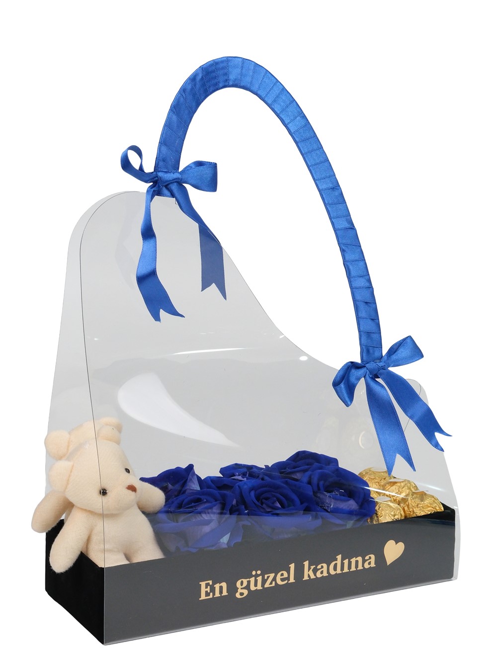 Kadife Kutuda Kişiye Özel Mavi Çanta | Çiçek Sanat