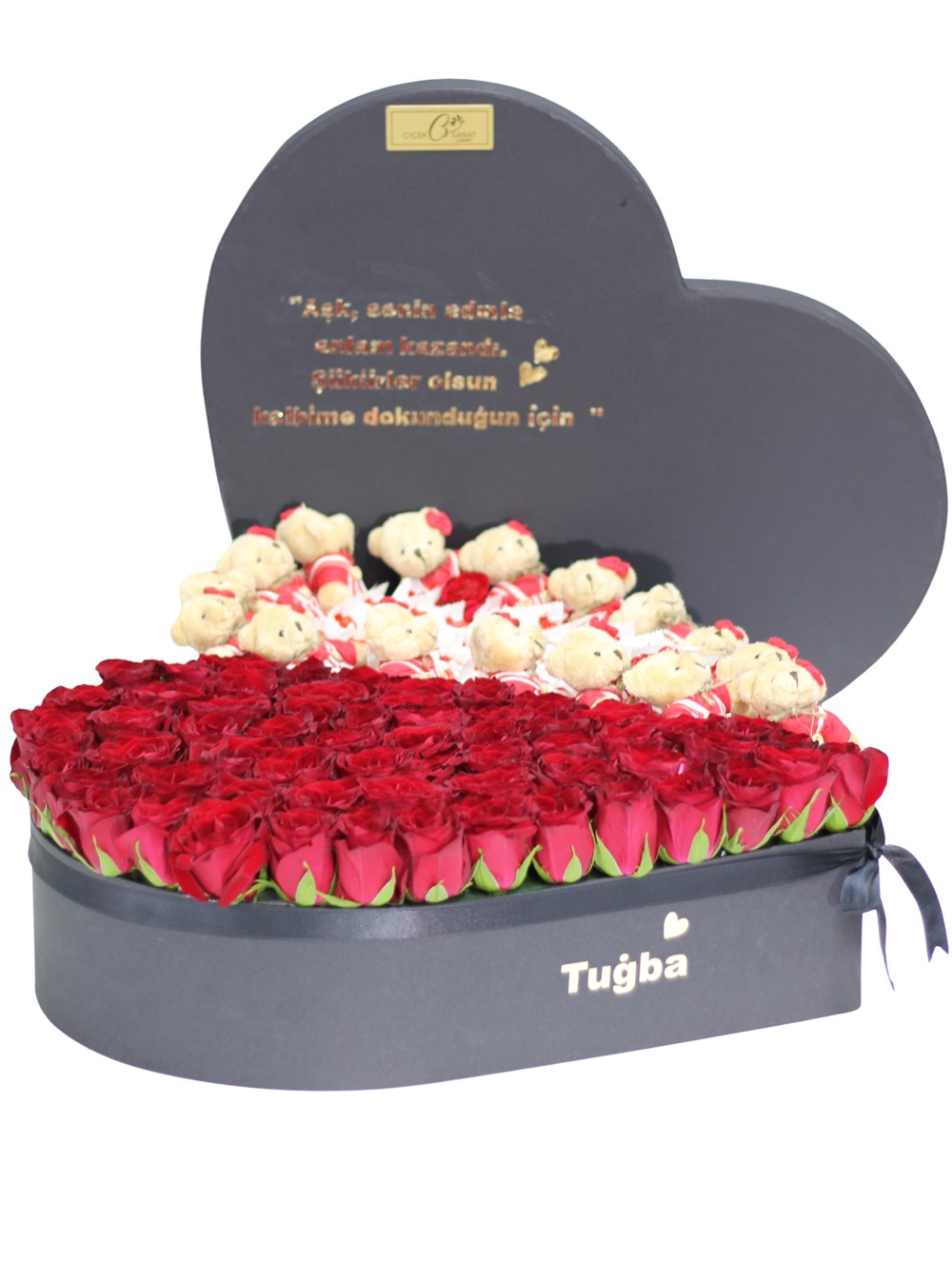 Zengin İçerik: 50-65 arası ithal gül, 17 peluş ayıcık ve 30 adet raffaello çikolata bir arada.