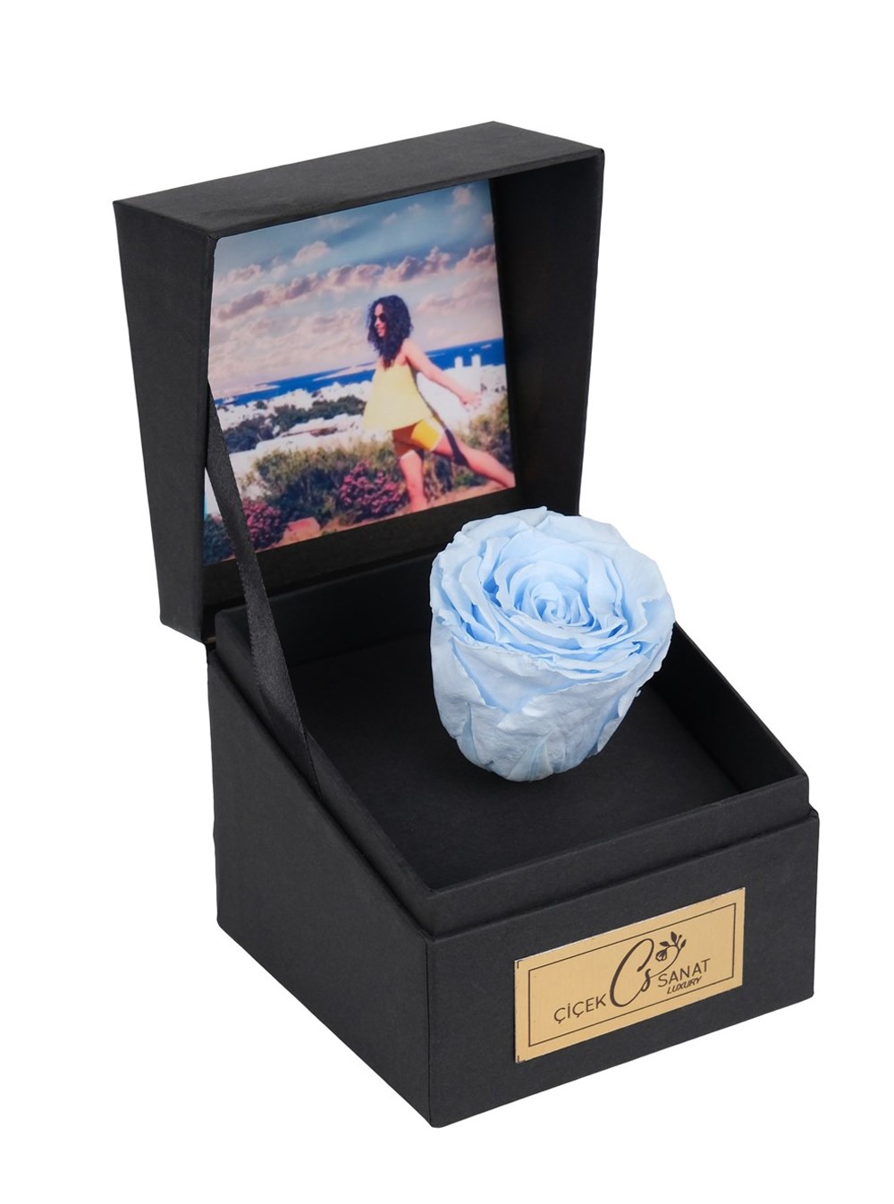 Kişiye Özel Fotoğraflı Kutuda Solmayan Gül Açık Mavi | Çiçek Sanat