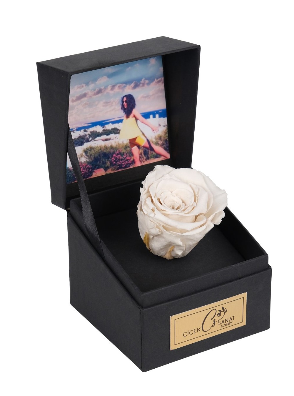 Kişiye Özel Fotoğraflı Kutuda Solmayan Gül Beyaz | Çiçek Sanat