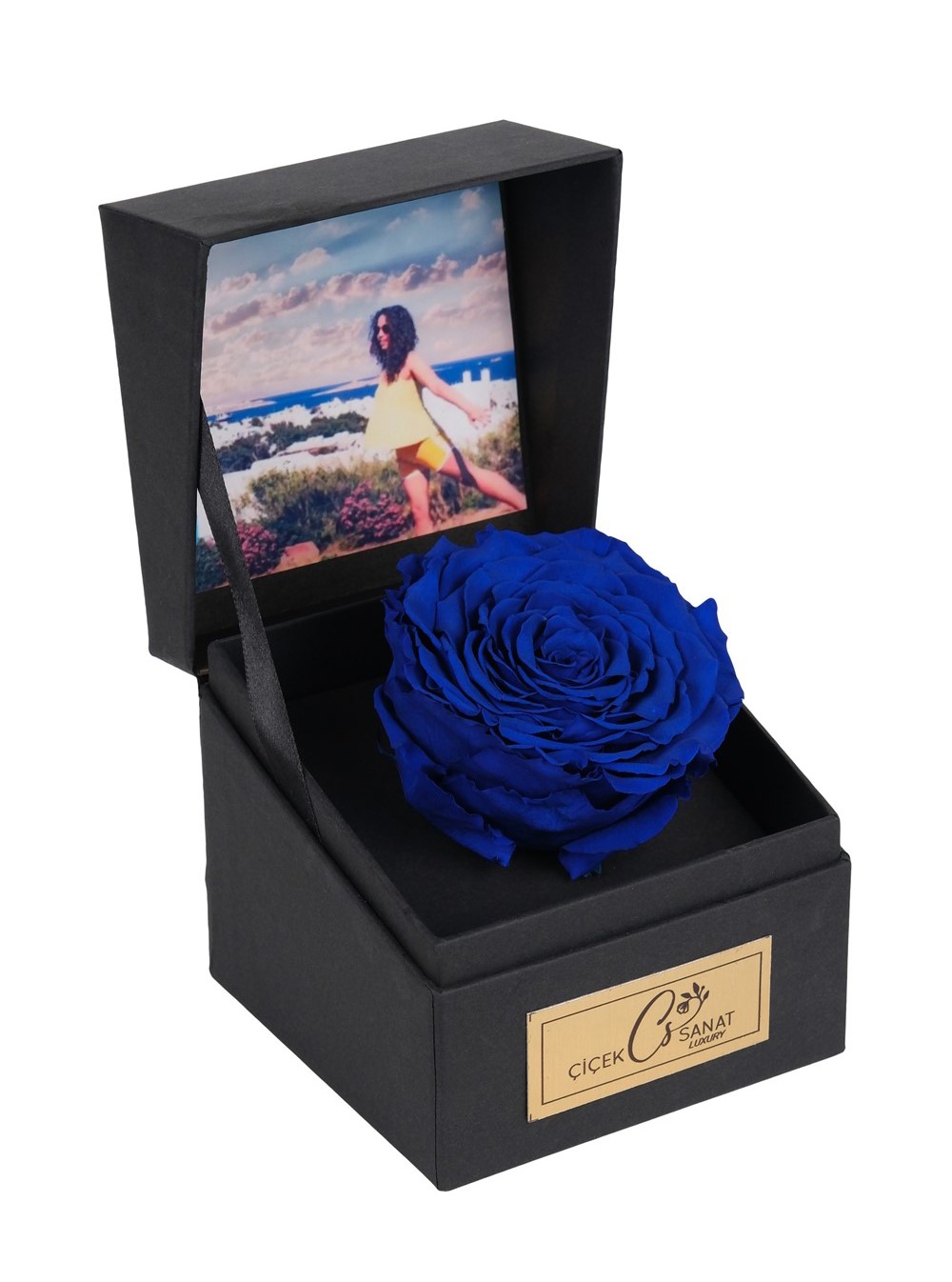 Kişiye Özel Fotoğraflı Kutuda Solmayan Mavi Gül XXL | Çiçek Sanat