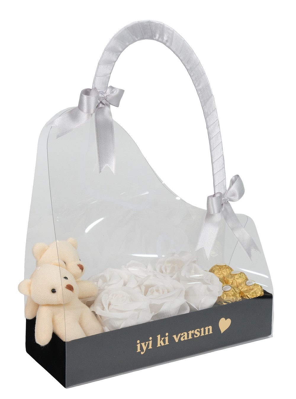 Kişiye Özel Kadife Kutuda Beyaz Çanta | Çiçek Sanat