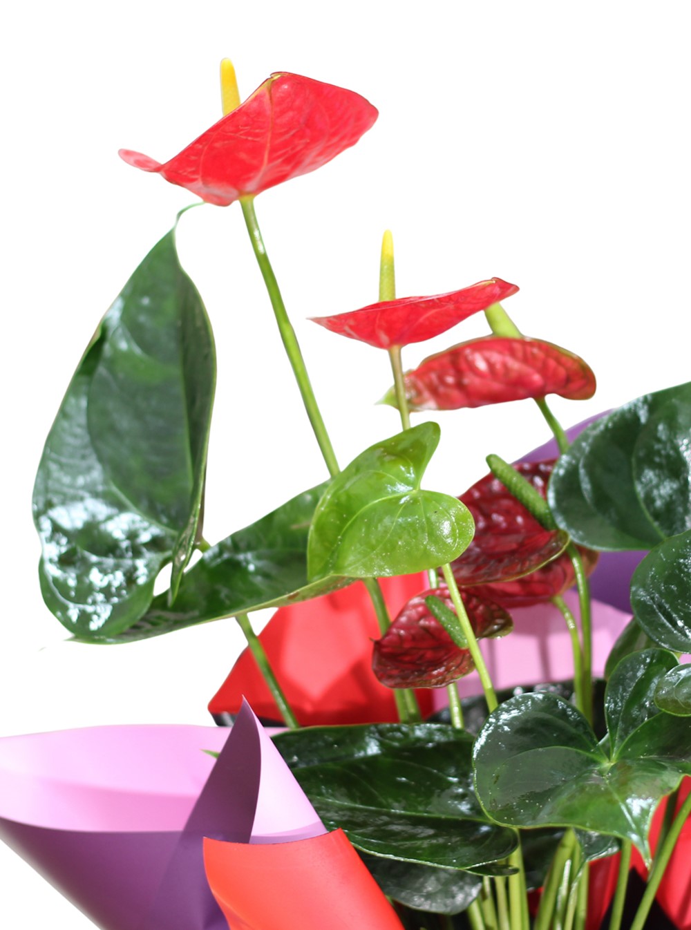 Yoğun aşkı, tutkuyu ve zenginliği simgeleyen kırmızı Antoryum (Flamingo) çiçeği, parlak kırmızı kalp formundaki çiçekleriyle her mekana anında çarpıcı bir etki katar.