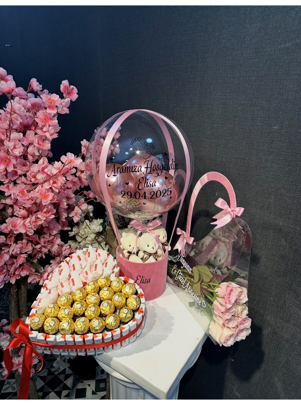 Kişiye özel bebek hediyesi arayanlar için tasarlanan bu muhteşem set, rengarenk balonları ve zengin çikolata içerikleriyle dikkat çekiyor. Stok durumuna göre renklerde farklılık gösterebilir, bu da hediyenizin özel ve benzersiz olmasını sağlıyor.
