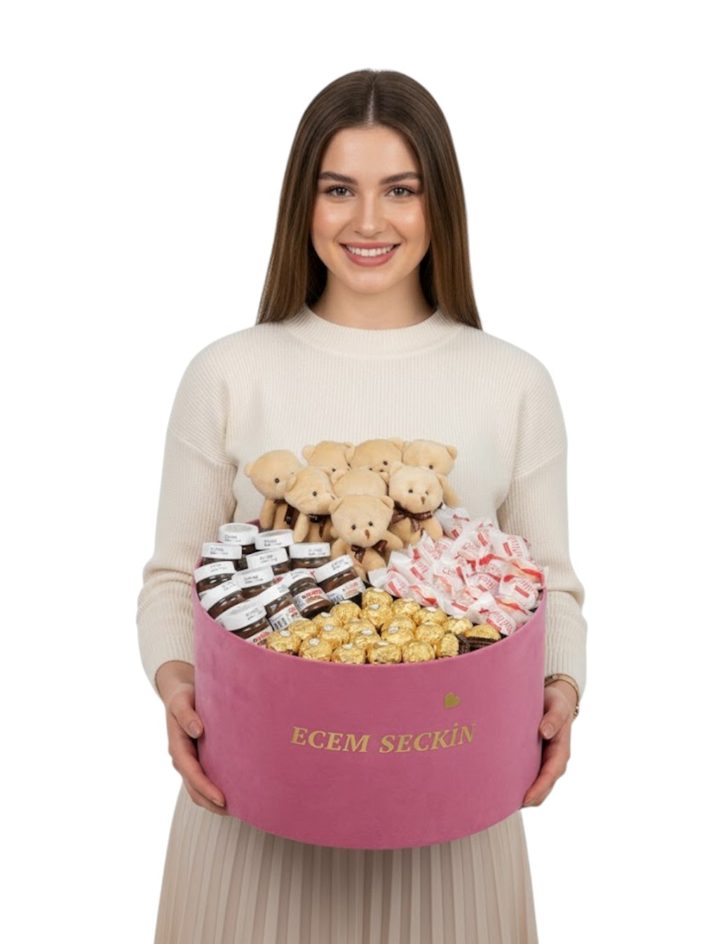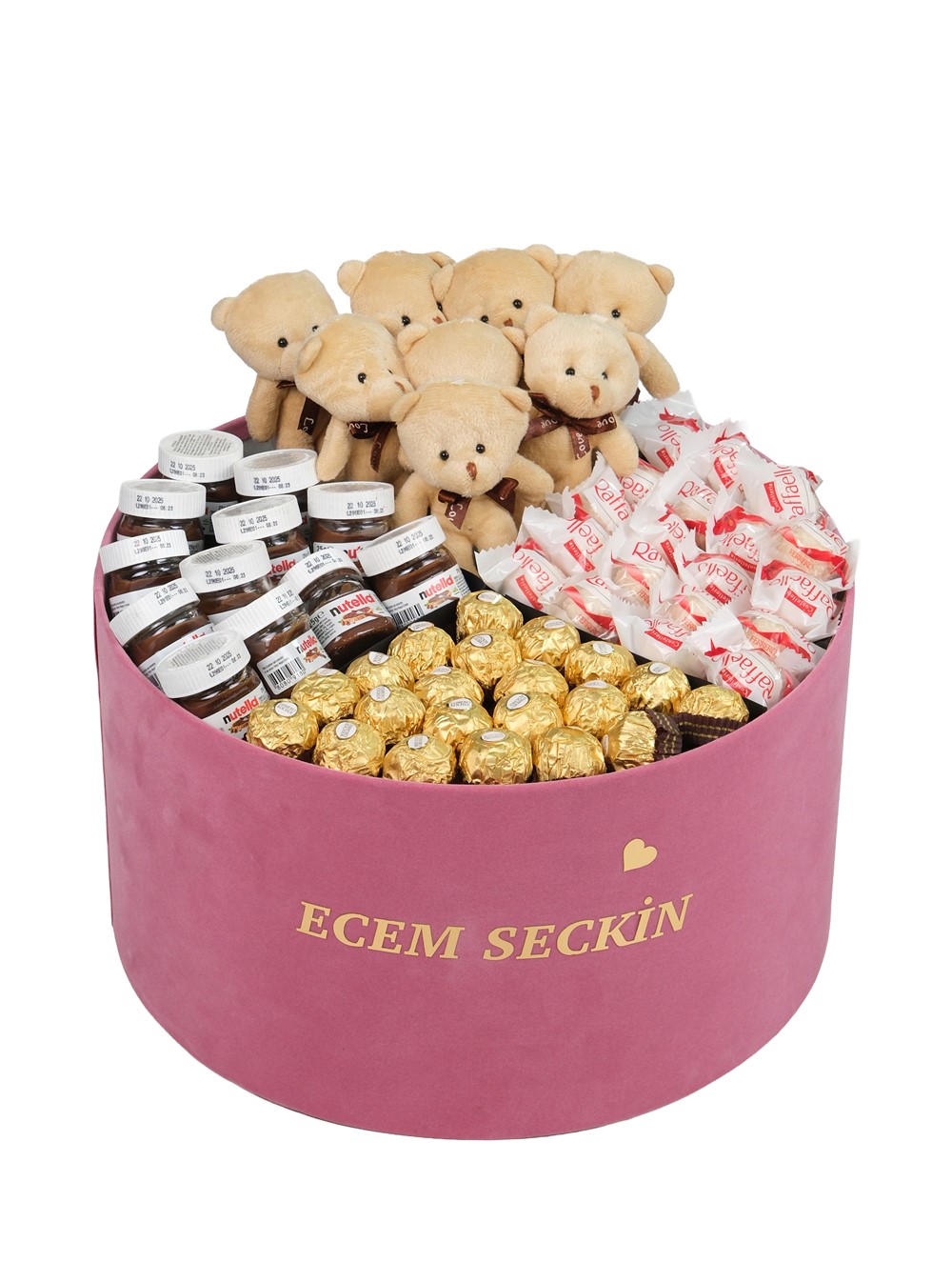 Rocher ve Raffaello çikolatalarının yanı sıra Nutella kavanozlarıyla zenginleştirilmiş bu çikolata kutusu, ona duyduğunuz sevginin tatlılığını her lokmada hissettirecek. İsimli hediye seçeneği ile kişisel bir dokunuş katabilir, bu kutuyu daha özel kılabilirsiniz. Hem görsel hem de lezzet açısından tam bir şölene dönüşen bu ürün, özel günlerde veya sadece sürpriz yapmak için ideal!