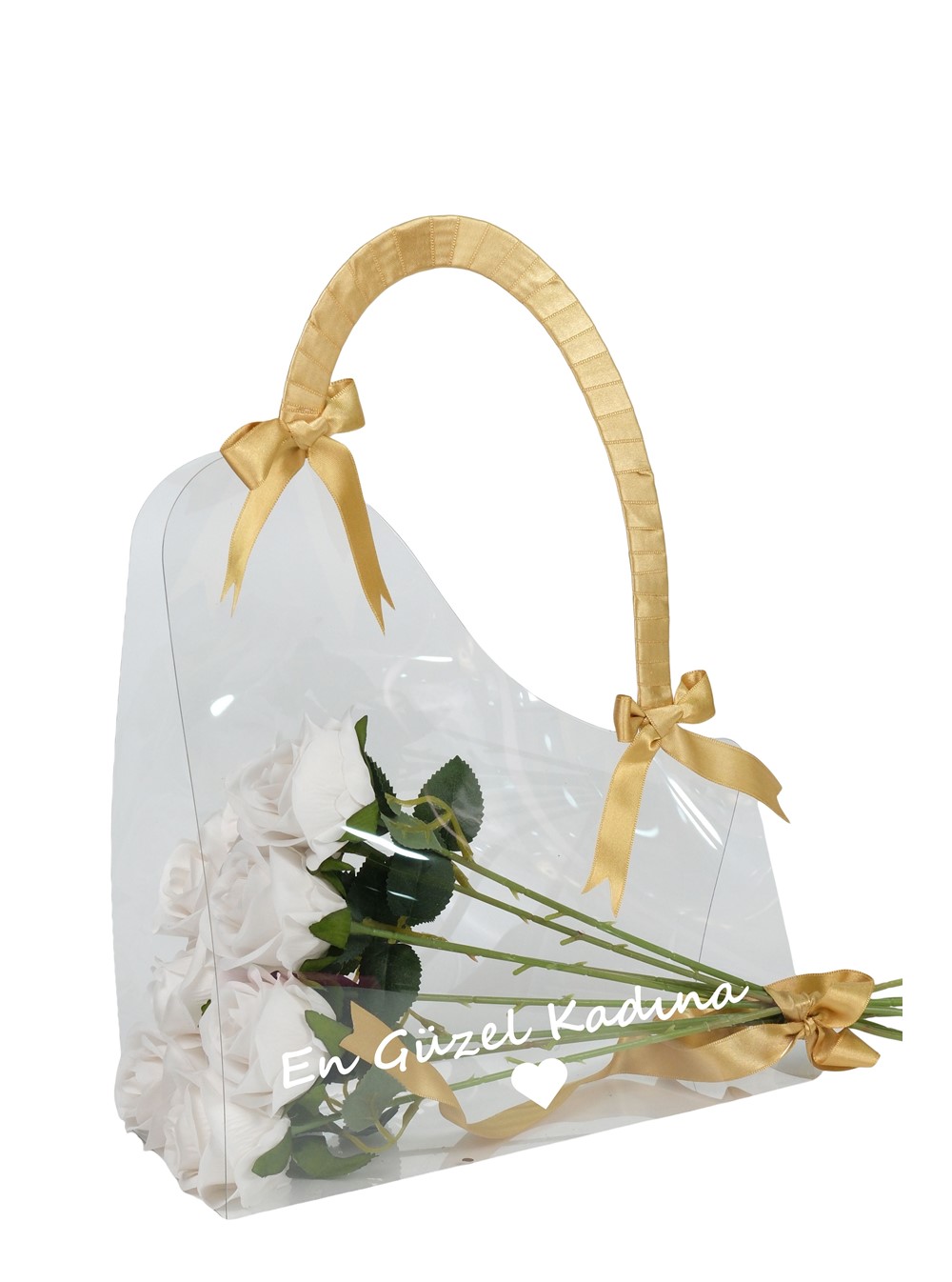 Kişiye Özel Şeffaf Çantada Beyaz Kalıcı Güller