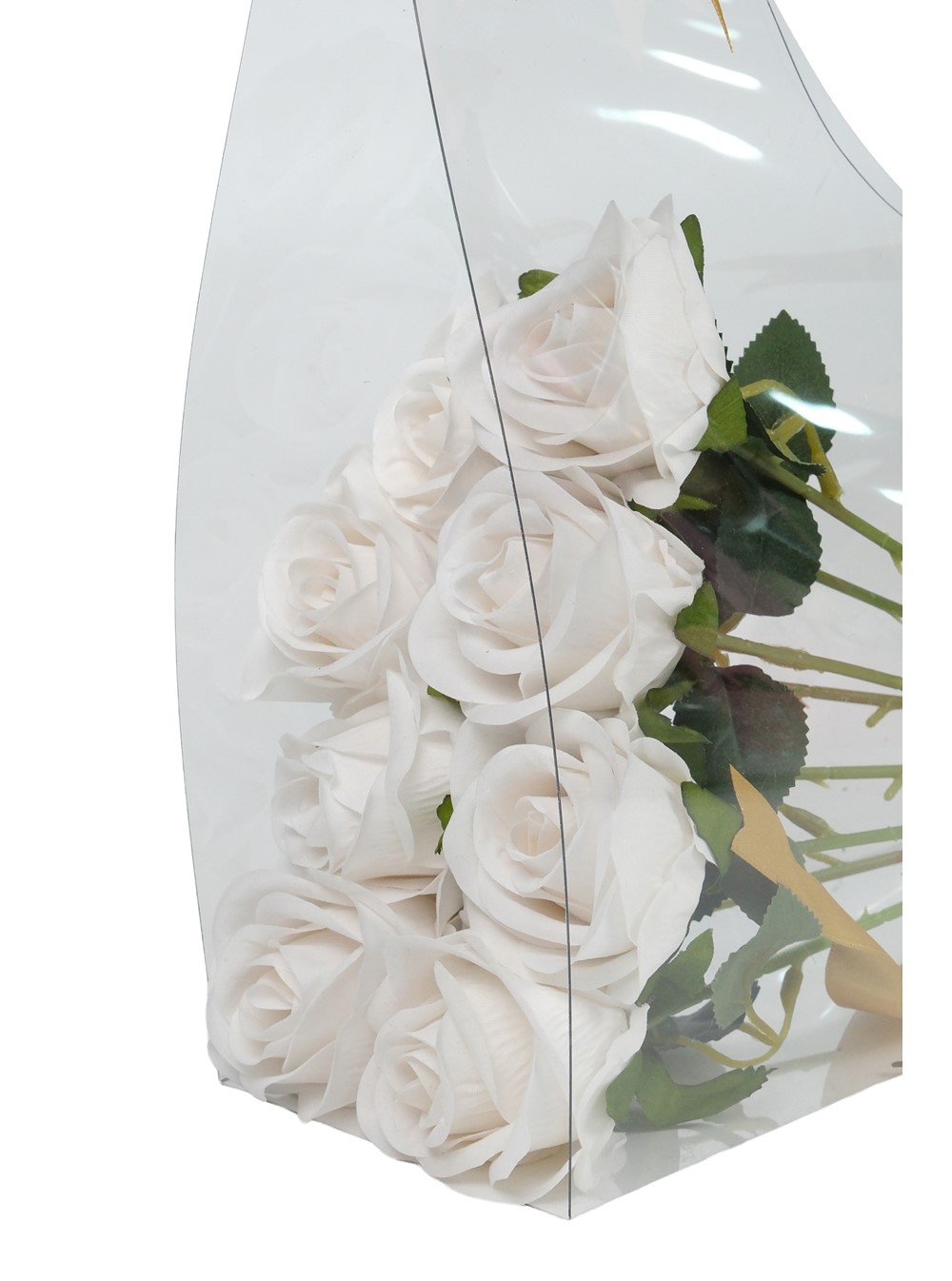 Kişiye Özel Şeffaf Çantada Beyaz Kalıcı Güller | Çiçek Sanat