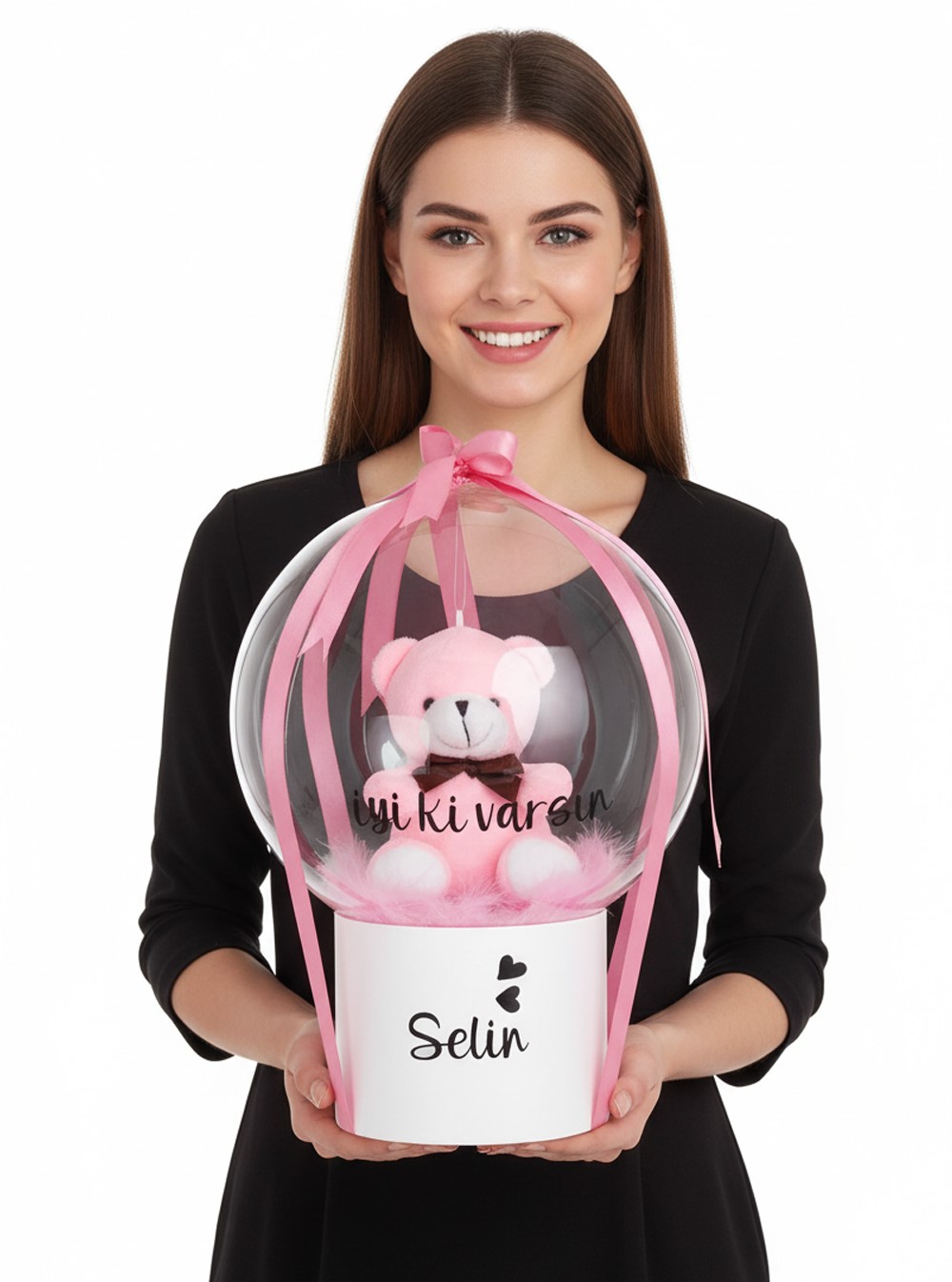 Sevdiklerinize kendilerini özel hissettirecek, şık ve zarif bir hediye arıyorsanız kişiye özel balon kutusu tam size göre! İçerisinde yer alan sevimli ayıcık ve pembe tüylerle hazırlanan bu özel tasarım, romantik görünümüyle hem kalpleri ısıtır hem de unutulmaz bir sürpriz sunar.
