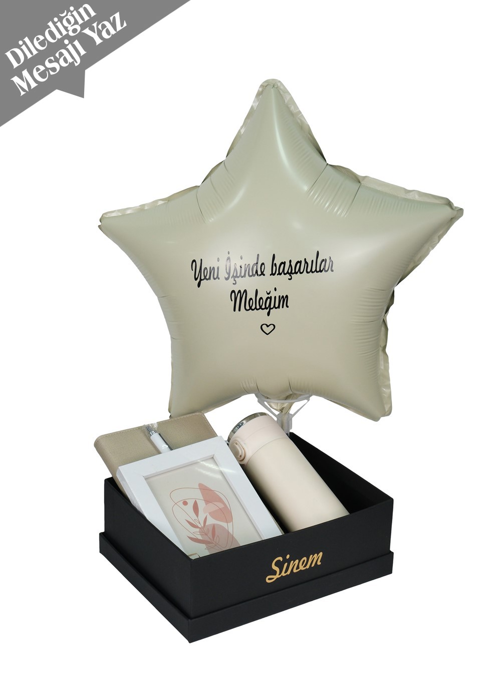 Balonlu hediye kutusu içerisinde, günlük hayatı renklendirecek kullanışlı ürünler yer alıyor. Şık termosu, zarif defteri ve fotoğraf çerçevesi ile sevdiklerinizin hem ihtiyaçlarını hem de anılarını düşünerek tasarlandı. Minik bir sürpriz olan folyo balon ve özel mesaj kartı ile hediyenizi daha da özel hale getirebilirsiniz.
