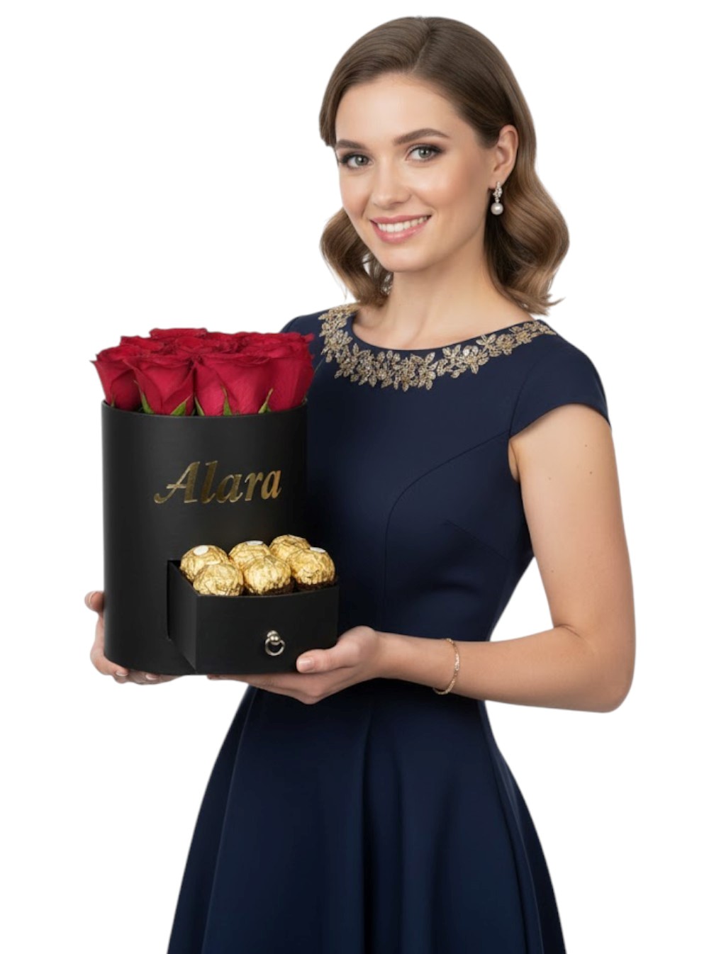Mabel Kutuda Kırmızı Güller ve Çikolata
