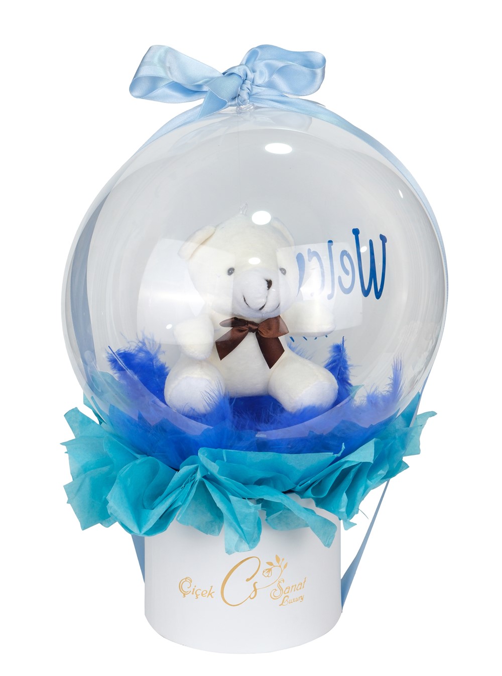 Mavi Kişiye Özel Balon Kutusu | Çiçek Sanat