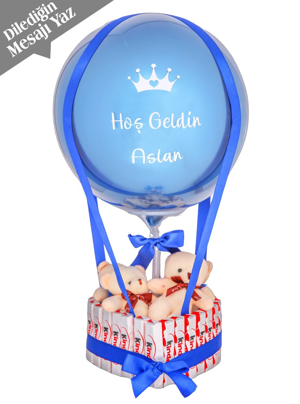 Balon üzerine dilediğiniz özel mesaj yazılarak kişiselleştirilebilen bu hediye, özellikle erkek bebek kutlamaları ve yeni doğum tebrikleri için şık bir tercihtir. Hem tatlı bir sürpriz hem de kalıcı bir hatıra sunan bu özel tasarım ile sevdiklerinize mutluluk katabilirsiniz.