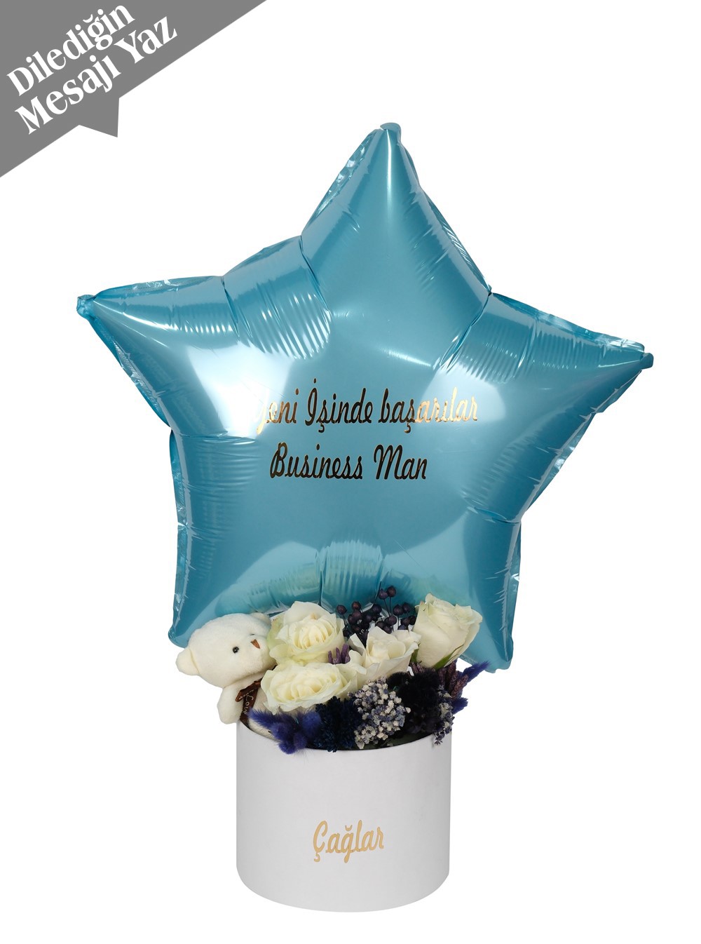 Sevdiklerinize unutulmaz bir sürpriz yapmak için Mavi Yıldız Çiçekli Balon Kutusu ideal seçim! Bu şık kutuda yer alan taze çiçekler ve renkli folyo balon, özel anları kutlamanın en güzel yolunu sunuyor. Doğum günlerinde, yıl dönümlerinde ve sevgiliye hediye olarak harika bir seçim!