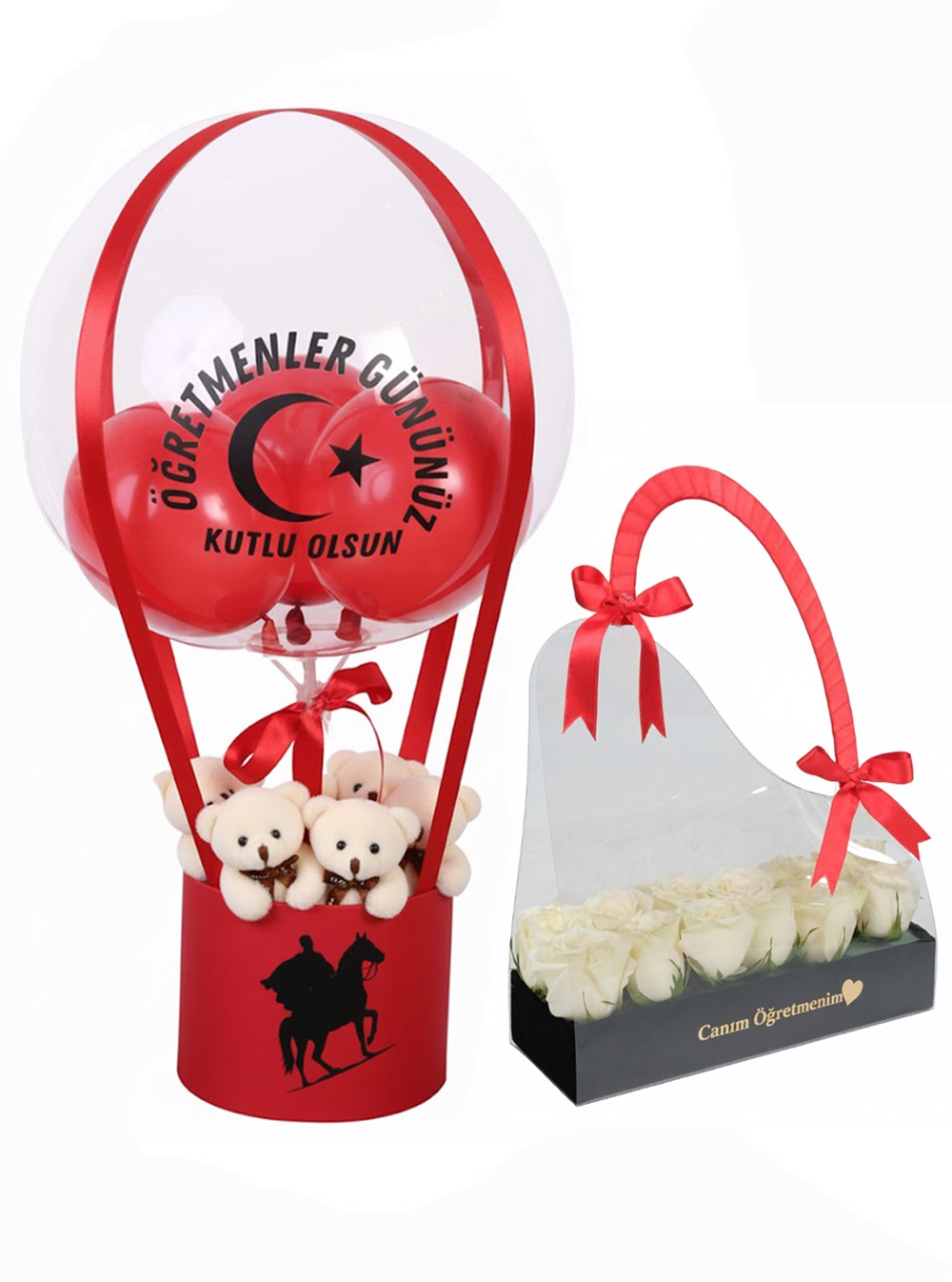 Öğretmenler Günü Hediyesi Balon Kutusu Set v2 | Çiçek Sanat