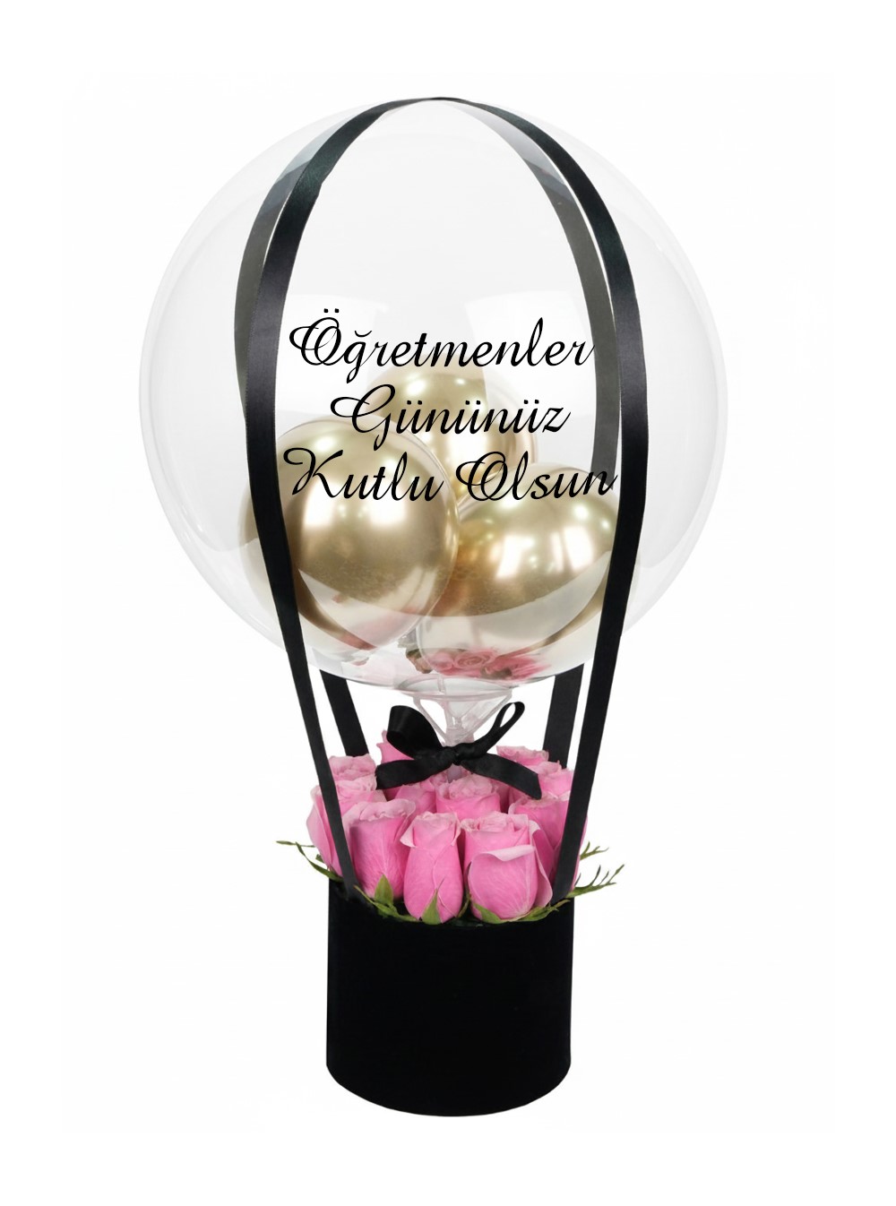 Öğretmenler Günü’nde, değerli öğretmeninizin ruhuna dokunacak, zarif ve anlamlı bir hediye sunun. Bu balon kutusu konseptli aranjman, ona duyduğunuz minneti göklere taşıyan bir sevgi mesajıdır.