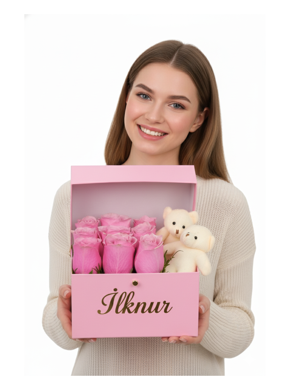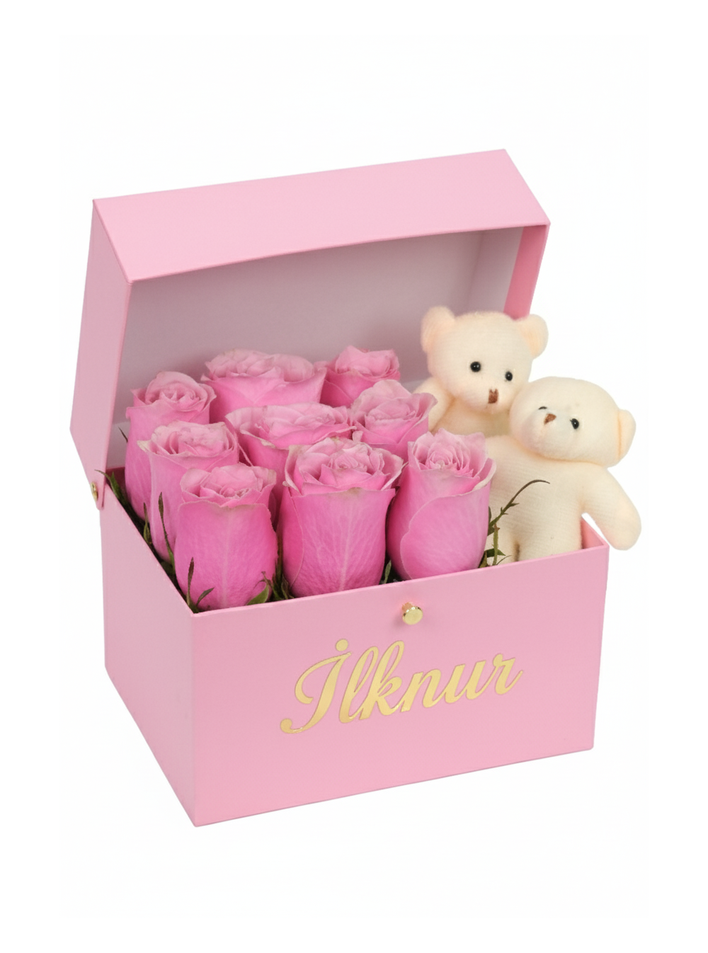 Pink Box Pembe Güller ve Teddy Bear | Çiçek Sanat