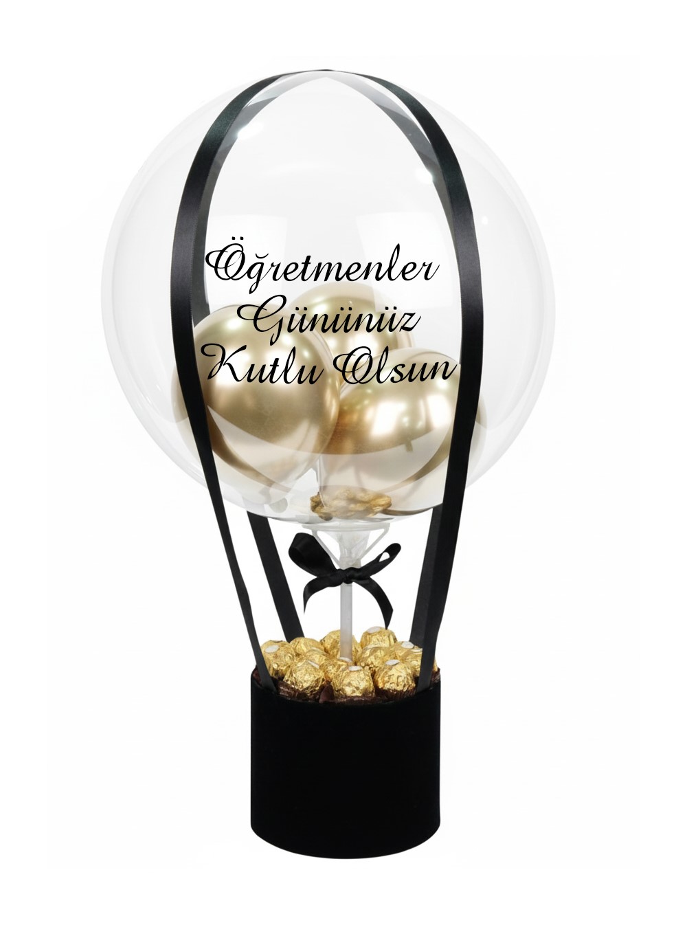 Duygusal Mesaj: Şeffaf balon üzerindeki "Öğretmenler Gününüz Kutlu Olsun" yazısı, en özel dileklerinizi zarifçe iletir.