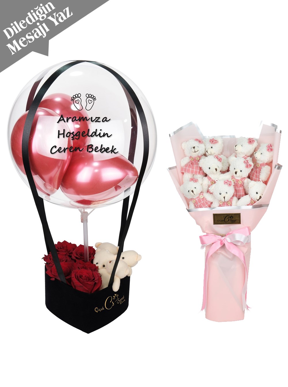 5-7 adet gül ve 4 Adet Ayıcık mevcuttur.