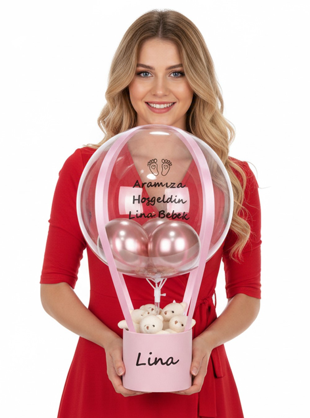 Yenidoğan Ayıcıklı Bebek Hediyesi Balon Kutusu | Çiçek Sanat