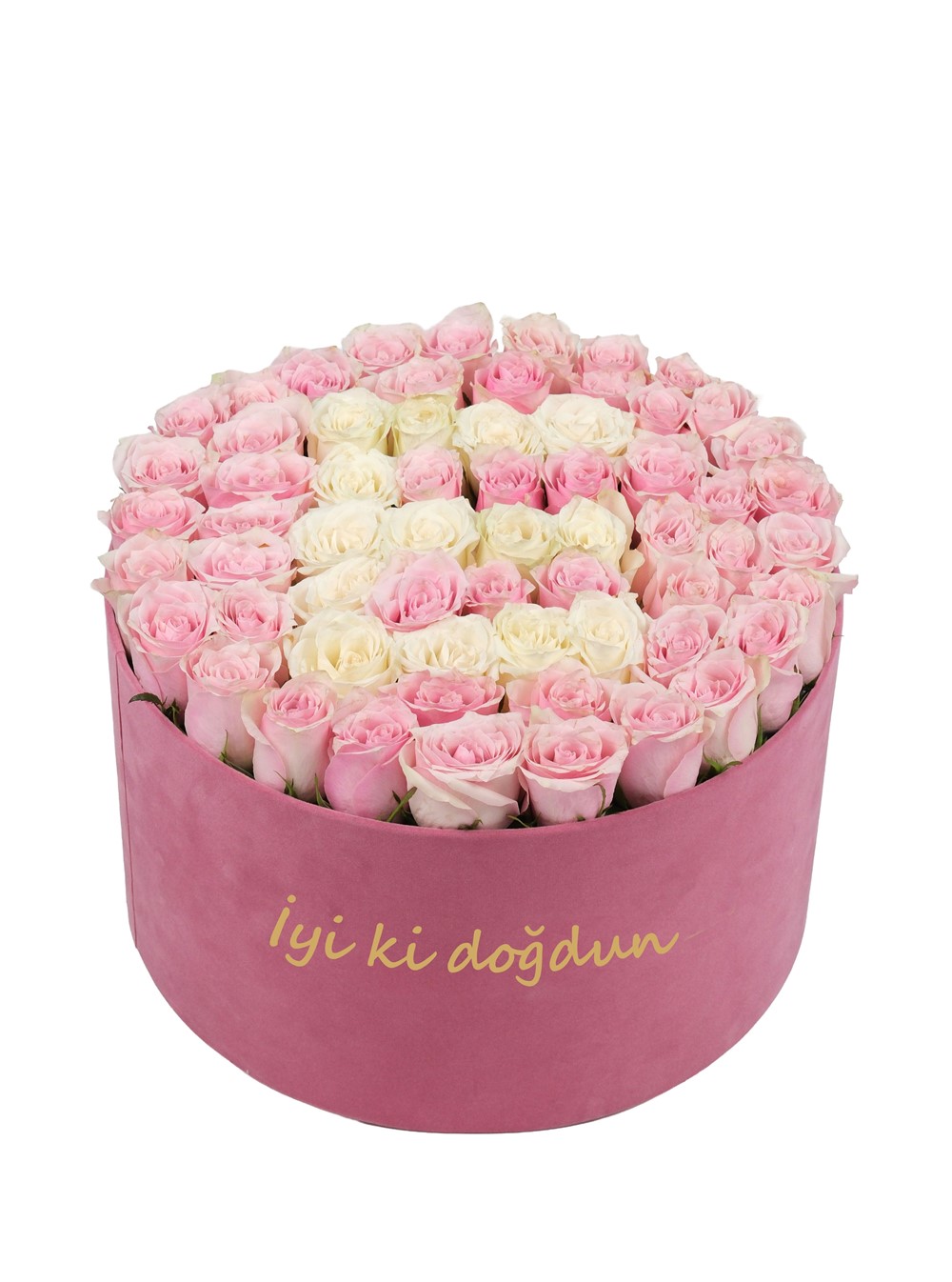 Ürün içerisinde boyutlarının farklılılarından dolayı toplam 65-75 adet pembe ve beyaz ithal gül bulunmaktadır.