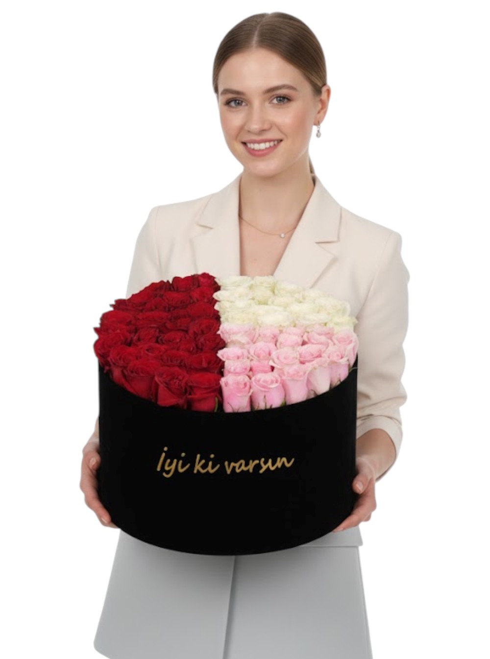 Sevdiklerinizle paylaştığınız en özel anlar için ideal bir hediye seçeneği sunan yuvarlak kutuda premium güller, etkileyici ve zarif bir sürprizdir. İçerisinde yer alan premium kırmızı güller, beyaz güller ve pembe güller ile göze çarpan bu şıklık, sevgilinize olan sevginizi en güzel şekilde ifade etmeniz için mükemmel bir seçenektir.