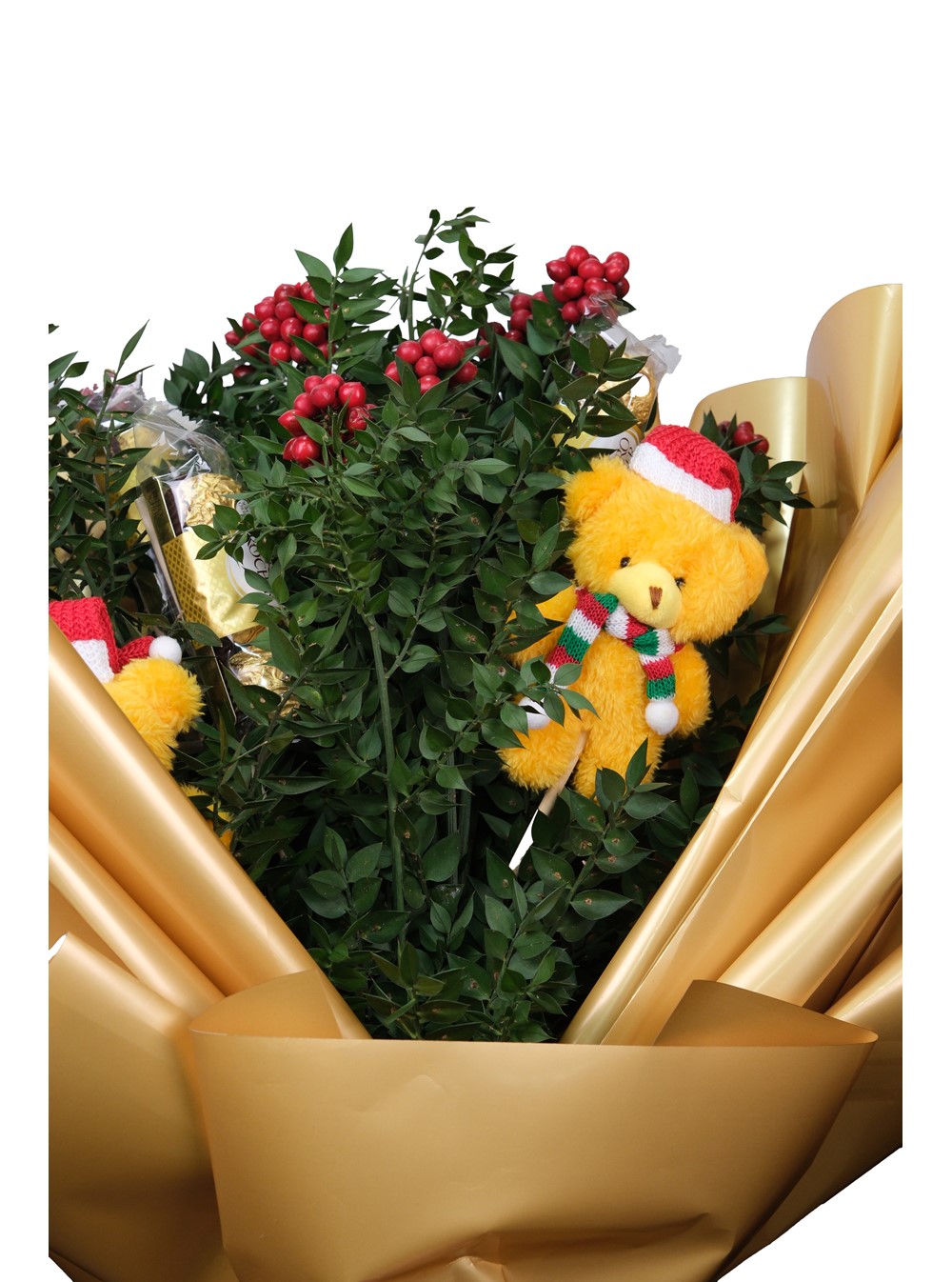 Kokina Buketi flower Designers ekibimizin tasarladığı bu üründe sevdiklerinizin yüzünü gülümsetecek kokina, çikolata ve ayıcık ile buket aranjmanı mevcuttur.