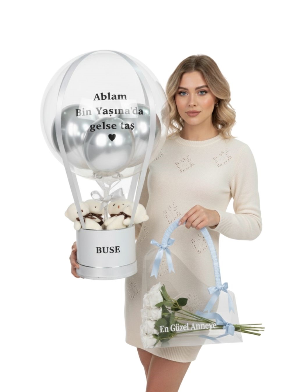 Kişiselleştirme: Balon ve çanta üzerine dilediğiniz mesaj yazılarak hazırlanır, böylece hediyenizin her detayı anlam kazanır.