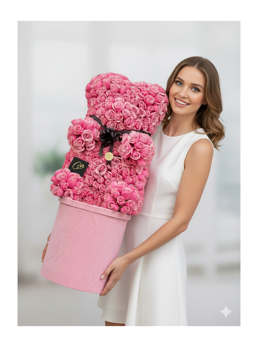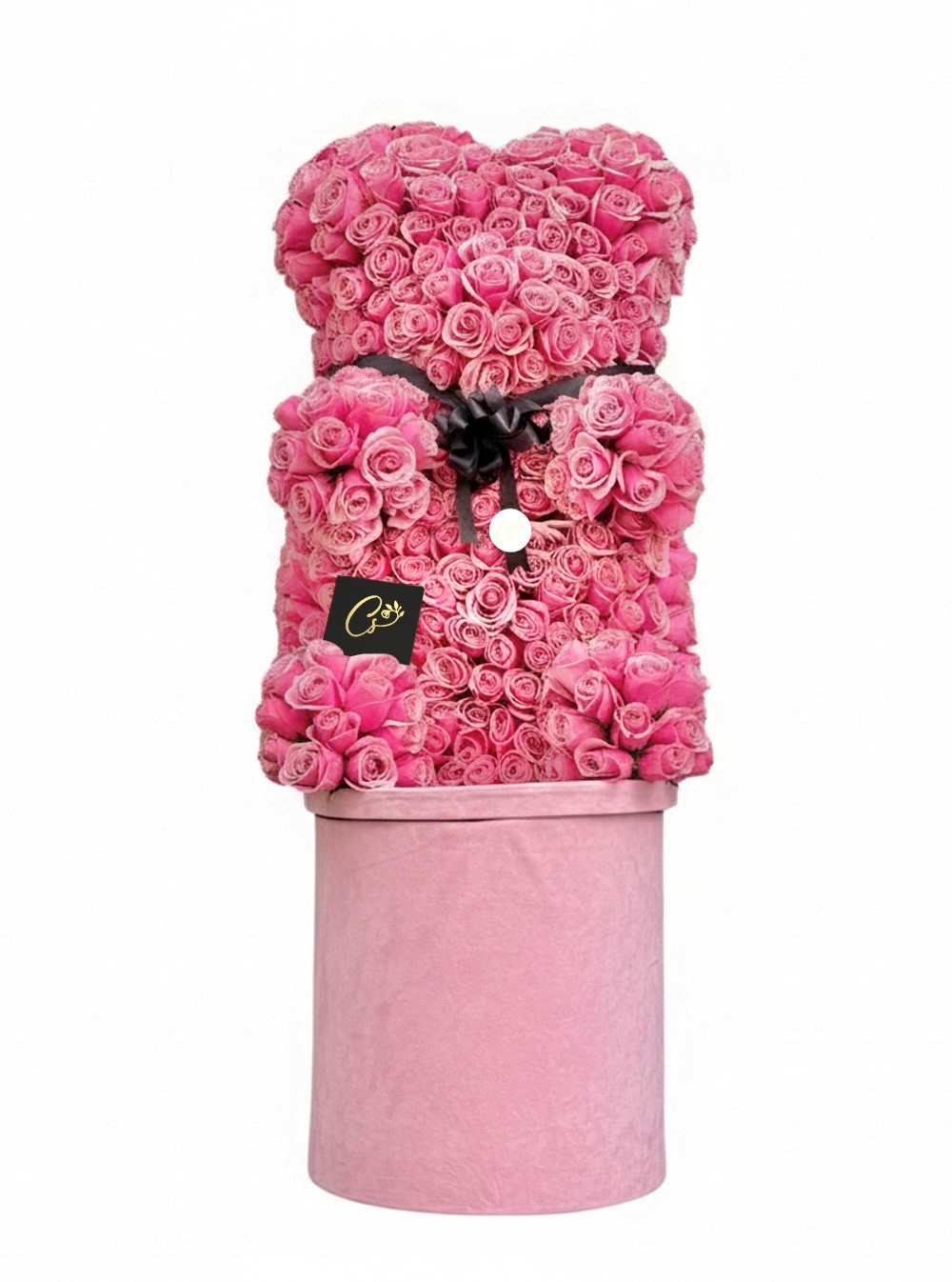 500 Adet Canlı Gül: Ayıcığın tamamı, özenle seçilmiş 500 adet taze, canlı gülden oluşur. Her bir gül yaprağı, aşkınızın derinliğini ve zarafetini simgeler.