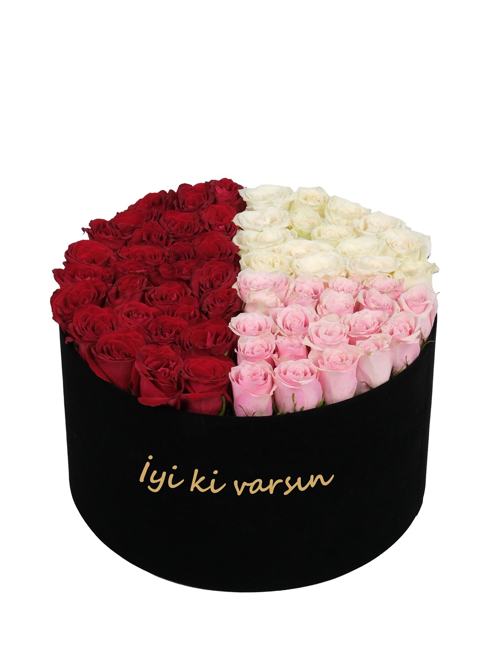 Ürün içeriğinde 20-24 adet kırmızı gül, 13-15 adet beyaz gül, 13-15 adet pembe gül bulunmaktadır. Güllerin boyutuna göre adet değişebilir.